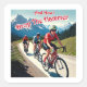 You can only let them draught you for so long, you need to drop the hammer and drop them. This great design is of a woman in front of two men on bikes in the mountainsin the style of a vintage travel poster.