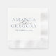These chic and elegant custom napkins feature the couples' names in a stylish serif font connected by a beautiful script font reading "And". The blue colour palette of the type can be customised to match your colours. These customisable napkins are a great touch for weddings or anniversary parties.
