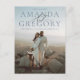 This chic and elegant Save the Date card features a full page photo and a sophisticated layout with the couples' names large and a beautiful script font reading "And" connecting their names. The blue colour palette of the type looks great against sky backgrounds but can be customised to work well with your photo. This save the date postcard is set up for easy mailing and makes a great budget option.