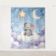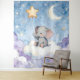 Form any room into a tranquil wonderland with the spectacular extra large wall tap tapestry this massive statement piece measuring a staggering 223.5 cm X2 164.2 cm features a heartwarming watercolour baby elephant floating on a soft cloud under a golden star and crescent moon perfect for creating a dreamy feature wall in a nursery playroom or bedroom. The high-quality fabric provides a soft mat finish that hangs beautifully. It's grand scale makes the enchanting night sky art come to life offering a boutique style alternative to
