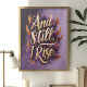 Embrace your inner strength with this stunning "And Still, I Rise" wall art. Featuring bold gold typography surrounded by vibrant orange and purple feathers, this design is a celebration of resilience and empowerment. Perfect for adding inspiration to your home, office, or as a meaningful gift, this piece radiates confidence and determination with its rich colours and uplifting message.