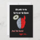 There is a constant battle going on inside our brains between good and evil. This design is a literal representation of that war. One side of the brain is shown with a halo above it and the other side of the brain is red and has a horn. The text reads "And the Battle Rages On"