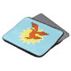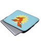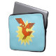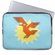 Decorative geometric bird laptop sleeve created with a vector illustration of a condor with its winds widely spread. It is flying in a clear blue sky in front of a big yellow sun. This flat geometric illustration is drawn in the style of traditional south american (andean) textiles, which frequently depict birds. The Andean condor is a large vulture, one of the longest living birds. It is a national symbol of Argentina, Peru, Bolivia, Colombia, Ecuador and Chile which is frequently mentioned in the folklore and mythology of this region.