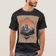 Presenting the Andes Mons women's t-shirt in black, featuring the brand's logo and abstract elements inspired by the Andes mountains. This minimalist design incorporates geometric triangulation in white, grey, and beige, capturing the essence of nature in a stylish, modern aesthetic. The design adorns the front of the t-shirt, perfectly blending brand identity with artistic expression.
