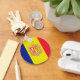 The flag of Andorra (Catalan: Bandera d'Andorra) is the national flag of the Principality of Andorra and features a vertical tricolor of blue, yellow, and red with the coat of arms of Andorra in the centre. Although the three vertical bars may at first appear to be of equal width, the centre yellow bar is slightly wider than the other two so that the ratio of bar widths is 8:9:8 with an overall flag ratio of 7:10.