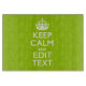 Your personalised Keep Calm saying on a fine custom android green style decor. A personalised Keep Calm style saying on a one of a kind gift. Humourous or whimsical try on your creative words on two editable lines of text. Remember to use CAPITAL letters for best results.