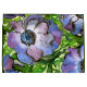 Gift bag decorated with a beautiful painted anemone flower in shades of purple, mauve and green