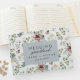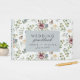 An elegant and romantic wedding guestbook design featuring a watercolor botanical pattern in watercolor burgundyl dusty pink flowers and green foliage and blue berries.
