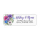 Anemone bouquet wedding address labels with watercolor floral anemone flowers. These colourful anemone wedding mailing labels are perfect for a summer or spring wedding. This purple, pink, blue and white anemone wedding address label has a bold, colourful look. Colours are purple, royal blue, hot pink, and white with green fern leaves in the watercolor anemone bouquet.