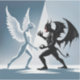 Embrace the timeless battle between light and dark with this angel vs devil sticker. Featuring a dynamic design that showcases the clash of purity and temptation, this sticker represents the inner conflict we all face. Perfect for decorating laptops, water bottles, notebooks, or anywhere you'd like to display a bit of cosmic duality.