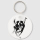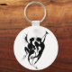 Unusual, monochrome button keychain with an elegant angel and devil silhouette illustration.