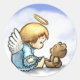 kawaii cute baby with angel wings sitting on the clouds with teddy bear toy plushie