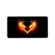 Angel fire heart with flaming wings on black background.
