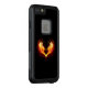 Angel fire heart with flaming wings on black background.