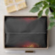 Angel fire heart with flaming wings on black background.