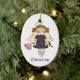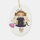 Adorable oval ornament with lovely country primitive artwork of a angel girl, with wings and halo holding a big tulip flower. Girl's name at the bottom can be personalise to say anything you want. Great Christmas tree ornament everyone will enjoy. Start a collection of all our special little winged girl ornaments.