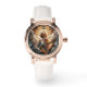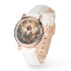 Beautiful angel holding a harp while looking upward, is featured on this watch for women. Rose gold vintage watch with white leather strap has clasp buckle. Use yourself or give as a gift, a pretty way to keep time!