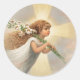 Angel in the sky holding lilies on her shoulder classic round sticker