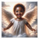 A poster featuring a gleeful African American cherubic figure with angelic wings amidst billowy clouds.