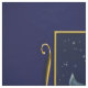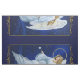 Linda Baysinger Peck’s painting of a white, flying angel, with blue night sky, clouds and stars. Gold metallic look border and scrolls surround the edges.