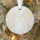 A white light guardian angel holds a heart and is surrounded by rainbow hearts at the angel's feet. A golden yellow halo is over the angel's head. The feathers on the angel's wings form into hearts. Painting was rendered with watercolor pencil on paper. Products with this angel are great for Christmas and other holidays! This is a great angel image to use for the holidays like Christmas or New Year's. Personalise with your own text and images using the "Customise It" option. Make personalised guardian angel gifts, charms, and other ornaments. Proceeds support DonnaBellas Angels a 501(c)3 non-profit.