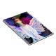 Rainbow colours gently wash over this image of a tranquil angel from original art by ©Kristy McAdams on a notebook.
