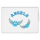 The paws of a dog and a cat with wings like angels. Original design in black and blue.