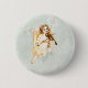 A round pinback button with a sweet image of an angel playing the violin with flowers in her hair. This vintage image looks weathered and faded from the hands of time, and has an worn yellowish tone. The background is a delicate shabby texture in grayish white with a vintage style pattern with leaves and flowers.