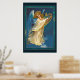 vintage art with painting of an angel floating above the clouds playing music on a harp.