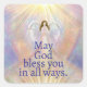 Angel Prayer May God Bless You Religious Christian Catholic Spiritual Stickers with an Angel image in ombre, watercolor tones of blue, purple, yellow, purple, pink, white. The label exudes heart light energy with the words "May God bless you in all ways" on the label. (You can change the words to your own with the "edit/personalise button" . From original angel art by Kristy McAdams ©.