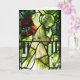 This lovely gothic angel design is from a photograph of a stained glass window taken inside an old, hidden away church in a lonely valley in Cornwall, England. The church is overgrown and the stained glass windows are almost invisible from the exterior. You can see the leaves through the window. Blank inside so you can add your own message.