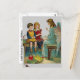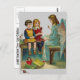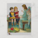 vintage art in multi colours with two cute children sitting in a chair in a classroom with a beautiful angel with wings teaching while holding a book.
