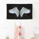 Angel wings backdrop for photo booth or party event. White feathery angel wings against a sparkly cosmos background. Your "angel" stands in front of the banner between the wings for a fun photo.
