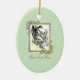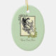 vintage art with drawing of an angel playing the harp surrounded by leaves.