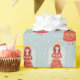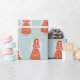 A modern angel in a red dress on a duck egg blue background. Original art by Nic Squirrell.