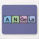The name Angela spelled out using elements from the periodic table. * Note "element A" is the fictional element "Angelium", numbered 165. You can totally customise this gift! Move the design around, change the colour or style, add your own text or images -- make it your own!