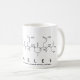 Angeles spelled out in amino acids as A N G E L E S (Alanine Asparagine Glycine Glutamic acid Leucine Glutamic acid Serine) on a mug for the scientist in you.