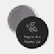Angel magnet- black with silver angel and silver text that says Angels Are Among Us
