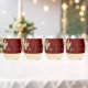This is a stemless wine glass which can be personalised and customised as desired. The design features gold coloured angels and holly, with room for a family name, Christmas wishes, or other text. The customisable background is a deep Christmas red. Message MineByDesign for help with custom designs!