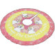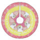 Angels Merry Christmas Personalised Christmas tree skirt features a beautiful design with a background of white snowflakes on pink, a ring of solid yellow, a ring of pink with white polka dots, and a pink star in the centre. Five little angels and white snowflakes add to this pretty Christmas tree skirt that you can easily customise with your family name! You'll treasure this pretty tree skirt for years to come.