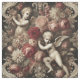 Cherubs entwined in a baroque bloom of roses and dahlias flirt between innocence and unrest, their expressions carved with celestial suspicion. This opulent fabric wraps classic beauty in quiet tension—ideal for drapery, upholstery, or garments that echo with divine mischief.