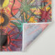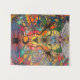 This artwork is a vibrant and intricate abstract piece filled with a variety of geometric shapes, patterns, and colors. The composition is symmetrical along a vertical axis, with a central line of interconnected circular shapes that resemble a series of orbs or planets. These orbs are surrounded by radiating lines and starburst patterns, creating a sense of energy and movement. The background is a kaleidoscope of colors, including shades of blue, purple, red, orange, yellow, and green. The colors are applied in a gradient manner, blending seamlessly into one another. There are numerous star-like shapes scattered throughout the piece, each with multiple points and varying in size and color. Some stars are filled with solid colors, while others have intricate patterns within them. In the upper part of the artwork, there are symbols that resemble astrological signs or ancient glyphs, adding a mystical or cosmic element to the piece. The lower part of the artwork features more geometric patterns and shapes, including triangles, circles, and lines that intersect and overlap. One of the most striking elements is a large, black, tentacle-like shape that winds its way through the center of the composition, adding a sense of organic movement amidst the geometric forms. This shape contrasts sharply with the bright colors and sharp lines of the surrounding elements. Overall, the artwork is a complex and visually stimulating piece that combines elements of geometry, color theory, and symbolism to create a dynamic and engaging visual experience.