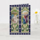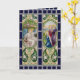 Wish family and friends a "Happy Easter" with this handsome religious card simulating stained glass in rich dark blues, bright spring greens, soft warm yellows, and silver greys. Done in the Liberty Style, the British version of Art Nouveau, two long rectangular panels with figured scenes arranged side by side represent two seated angels at the empty tomb on the left and the Three Marys come to anoint the body of Jesus on the right in oval frames surrounded with stylised greenery. + Inside: A large panel with stylised Easter lilies. Image Credit (RT 01): Antique images from an embossed postcard in chromolithography entitled A Peaceful Easter, Easter Hymns Series, No. 714, originally published by Raphael Tuck & Sons, London, England, and printed in Saxony, Germany, 1912, from the designer’s private collection.