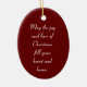 Lovely, oval ornament with vintage picture of three angels with baby Jesus, is featured on the front. And back of ornament reads, "May the joy and love of Christmas fill your heart and home". A pretty ceramic ornament for your tree or give as a gift to celebrate the Holidays!
