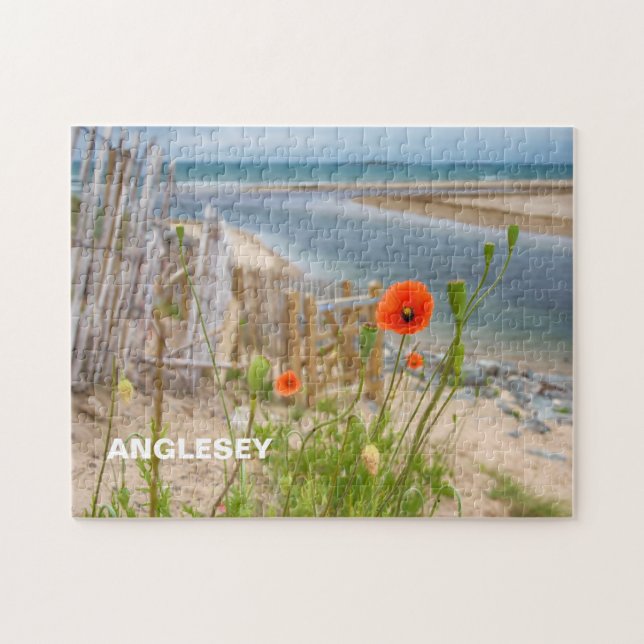 Anglesey Wales Scenic View Beach And Wild Poppies Jigsaw Puzzle