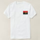 The front of this t-shirt bears a small Angolan flag with its familiar yellow motif over red and black, while the back displays a relief map of Angola. Available on t-shirts, sweatshirts, polos, long-sleeves and more.