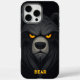 This iPhone case is for bear lovers. The design features a grumpy and angry looking bear with yellow eyes. You can personalise the text.