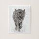 Angry Black Wolf in the Snow , wild Winter Jigsaw Puzzle