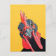 Angry chicken in yellow postcard