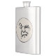 The product is a good size and came exactly as it was pictured. The lid is not attached to the flask, which could be dangerous on drunken nights... The print came out surprisingly well and looks very sharp. Would definitely recommend.